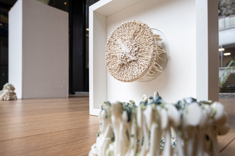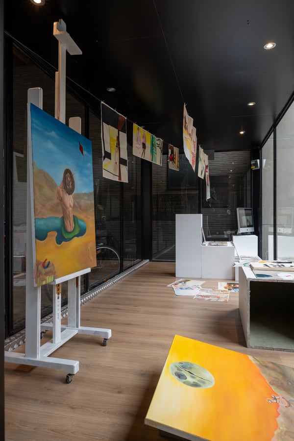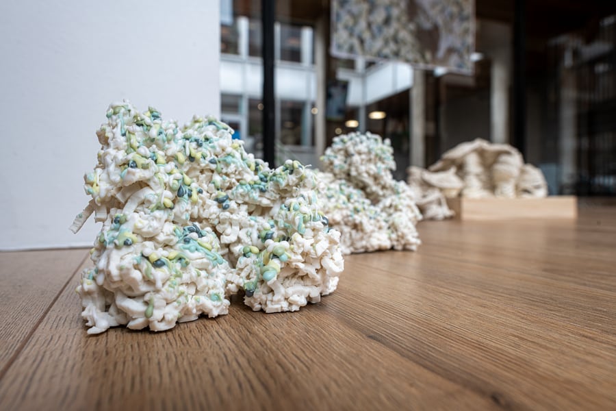 De laureaten van 2024-2025 stellen hun werk tentoon in de expo-containers van SASK, solo of samen met andere laureaten.