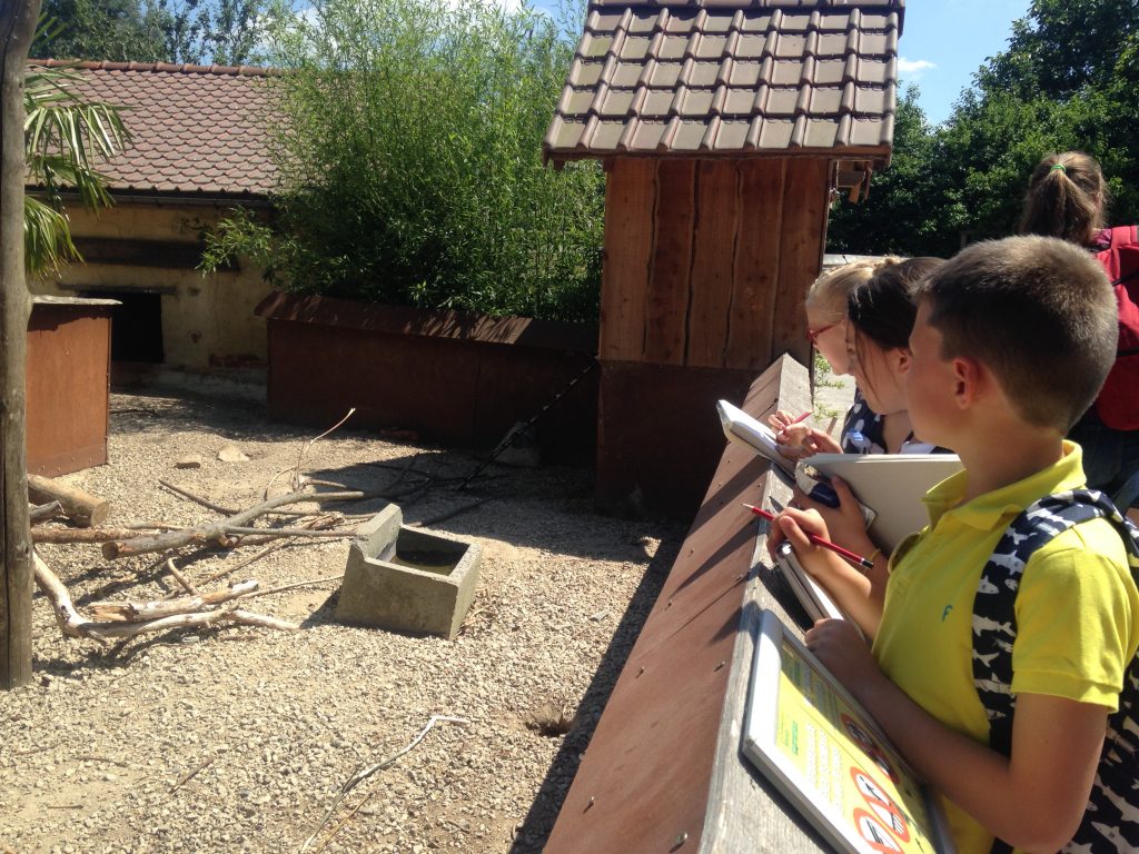 Met de bus gingen we naar de Zonnegloed. Niet alleen leuk om eens het klaslokaal eens te verlaten, maar vooral om dieren te tekenen naar waarneming.
