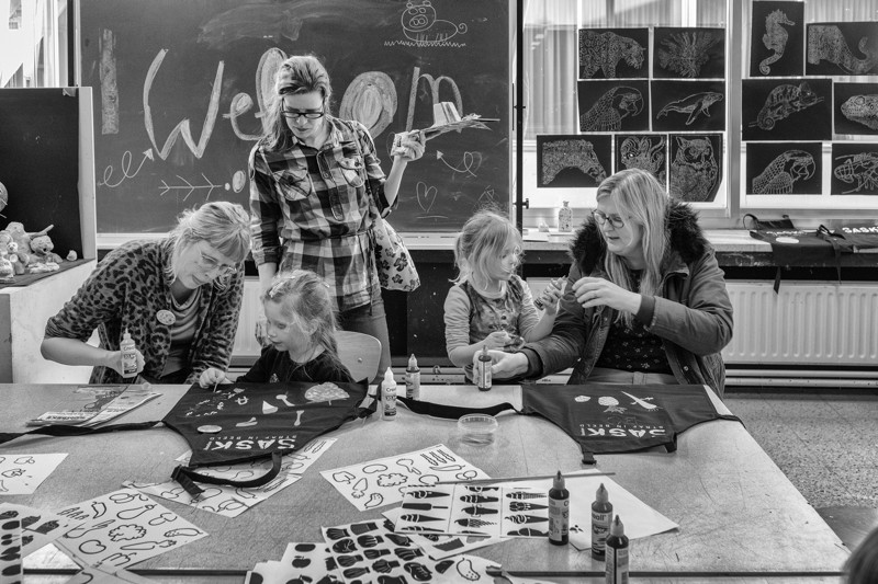 Op zaterdag 16 februari zette de SASK zijn mond wagenwijd open voor jou. Het klassieke opendeur-recept bestond uit een overdadig aanbod aan open-lessen, workshops, grime, huisgemaakte limonades, bier- en wijnbar, frieten, pannekoeken en ander lekkers….. Maar daarnaast stonden ook veel andere artistieke gekkigheden op het menu zoals een wandelende kauwgom-ballen-machine en muzikaal fornuis !